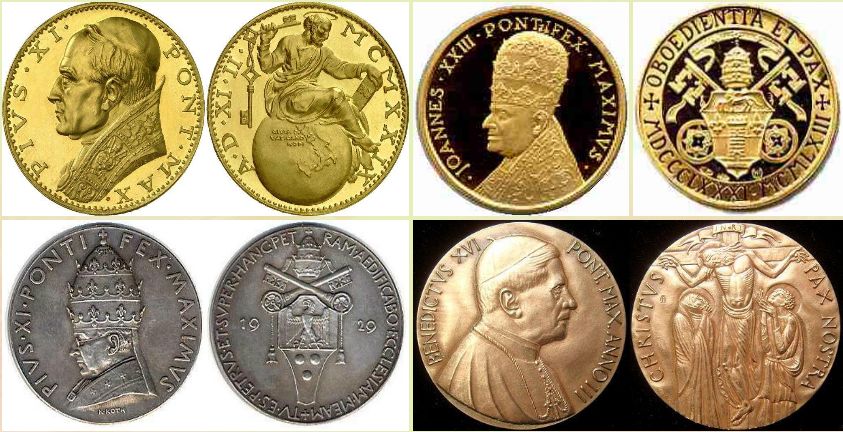Exhibit C - The Papal Coins : Below are the papal medals. Within these medals you will find the words PONT MAX, PONTIFEX MAXIMUS, AND PAX. The definition of Pontifex Maximus will be located following after this exhibit.